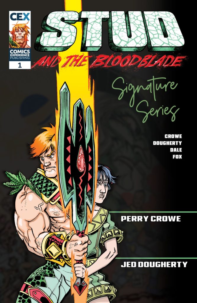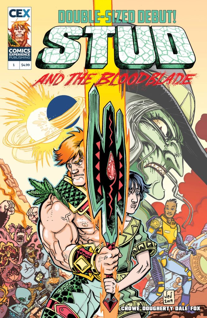 Home / Series / Stud and the BloodBlade Stud and the BloodBlade Welcome to Ouroboros, a world teetering between far future and primordial past, where aliens and barbarians, bigfoots and robots, monsters and puns wrestle for control! Mightiest is Stud, he of immense strength and nonexistent impulse control! Follow Stud’s caravan of carnage as his cursed BloodBlade, keeps him on a razor’s edge between hero and Gary! From co-creators Perry Crowe and Jed Dougherty: it’s He-Man meets The Tick meets Judge Dredd - it’s STUD! Available on Print Comics Show All | Hide Variants Stud and the BloodBlade #1 $4.99 Select options This product has multiple variants. The options may be chosen on the product page Stud and the BloodBlade #1 - Cover B $4.99 Add to cart Stud and the BloodBlade #2 $4.99 Select options This product has multiple variants. The options may be chosen on the product page Stud and the BloodBlade #2 - Cover B $4.99 Add to cart Stud and the BloodBlade #3 $4.99 Select options This product has multiple variants. The options may be chosen on the product page Stud and the BloodBlade #3 - Cover B $4.99 Add to cart Stud and the BloodBlade #1 #1 Signature Series (limited to 250) $29.95 Add to cart Stud and the BloodBlade #1 ULTRA-LIMITED EDITION METAL VARIANT Stud and the BloodBlade The Collected Edition Merchandise & Apparel Stud and the BloodBlade Stud Sticker by Jed Dougherty $3.99 Add to cart Stud and the BloodBlade 16 oz Shaker pint glass by Jed Dougherty $19.99 Add to cart Digital Comics Stud and the BloodBlade #1 $1.99 Add to cart Stud and the BloodBlade #2 $1.99 Add to cart Stud and the BloodBlade #3 $1.99 Add to cart Stud and the BloodBlade #4 $1.99 Add to cart Stud and the BloodBlade #5 $3.99 Add to cart Stud and the BloodBlade The Collected Edition $19.99 Add to cart